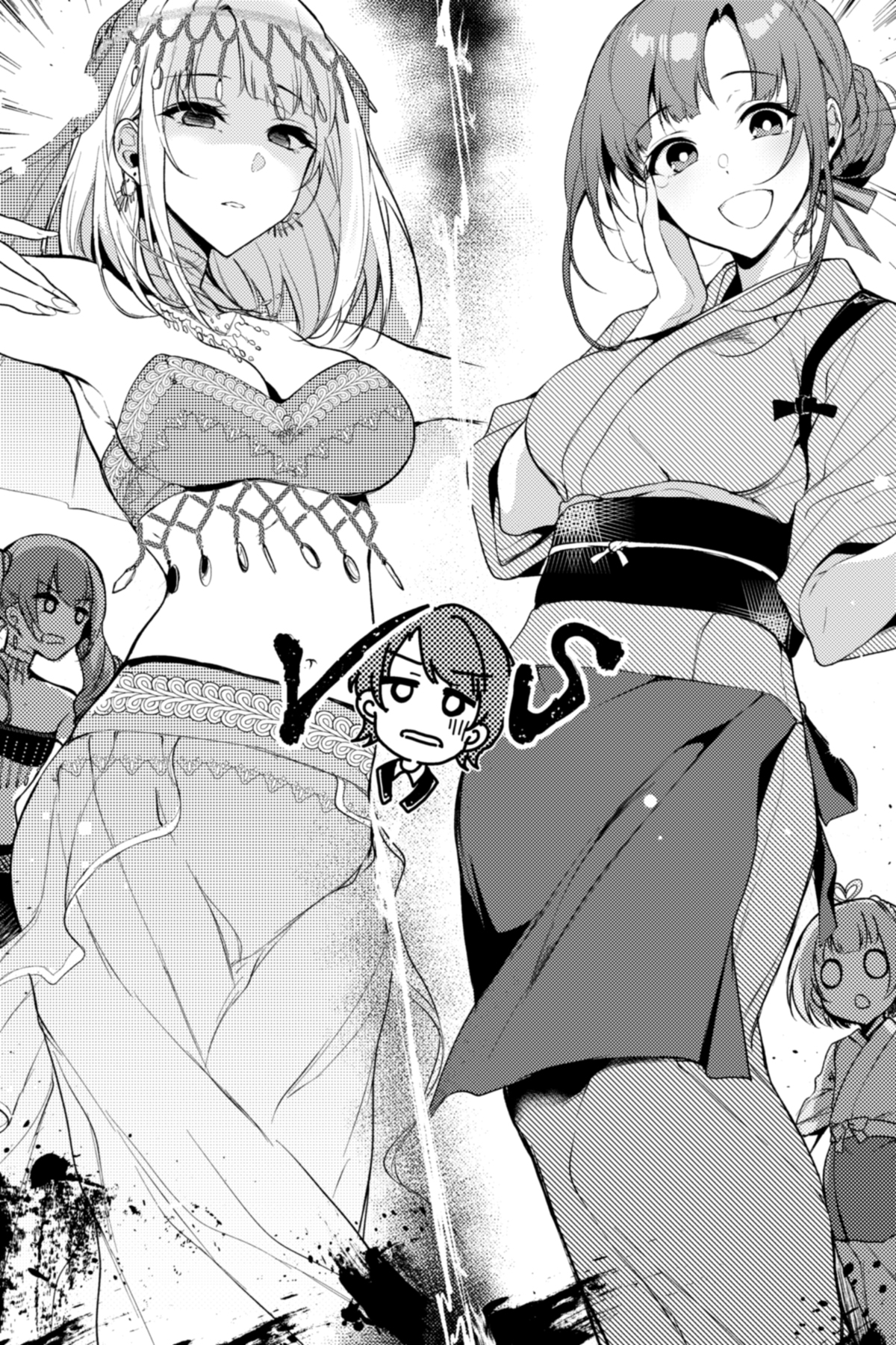 Raja mengenakan pakaian penari perutnya dan Yuzuki mengenakan kimononya. Keduanya memanggil orang banyak.