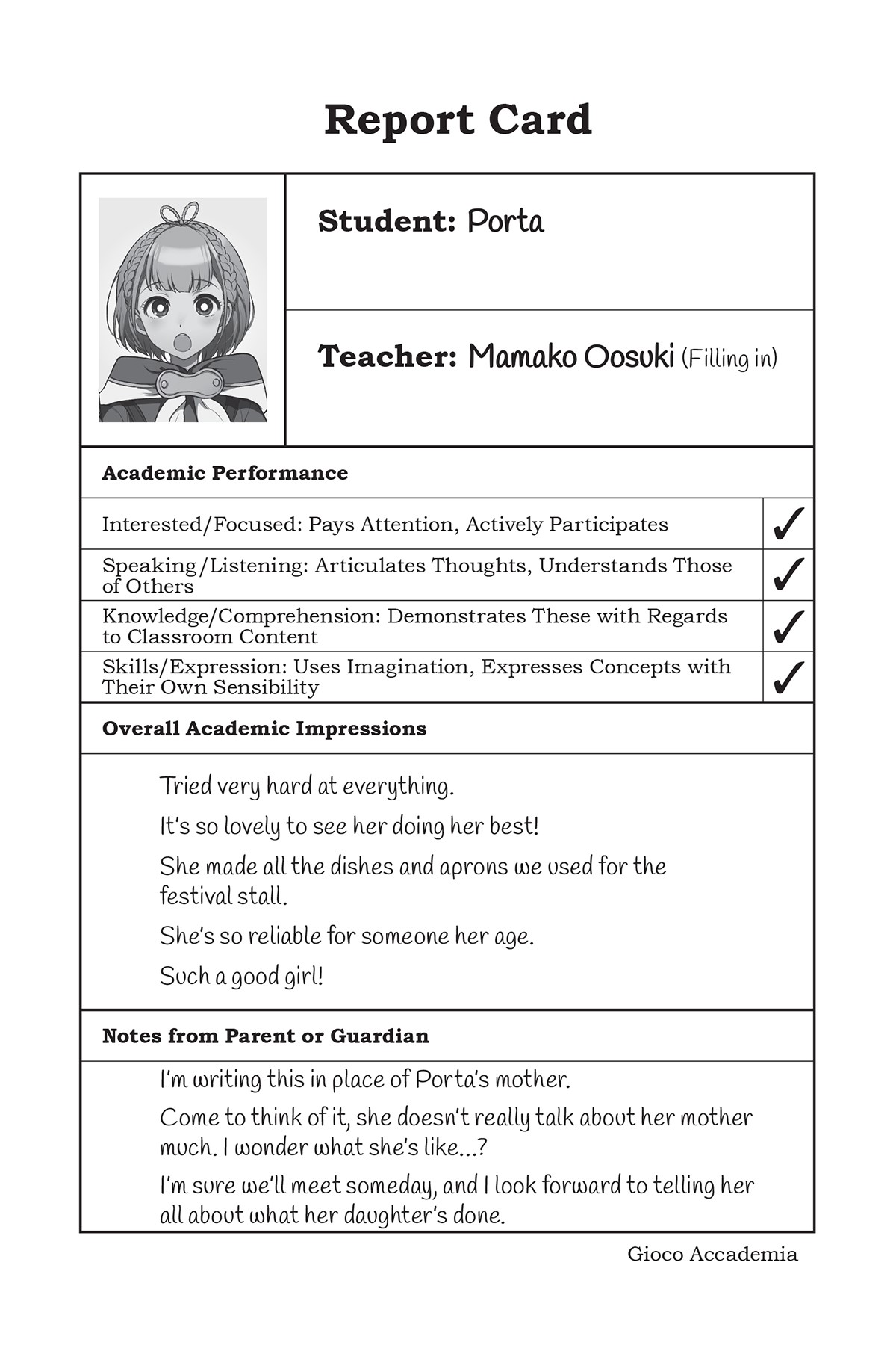 “Mm, mm, gadis yang baik, Porta. Kamu sangat baik. Yah, dengan mempertimbangkan pendapat Porta, kurasa aku bisa memberimu izin untuk tinggal, Bu. ”