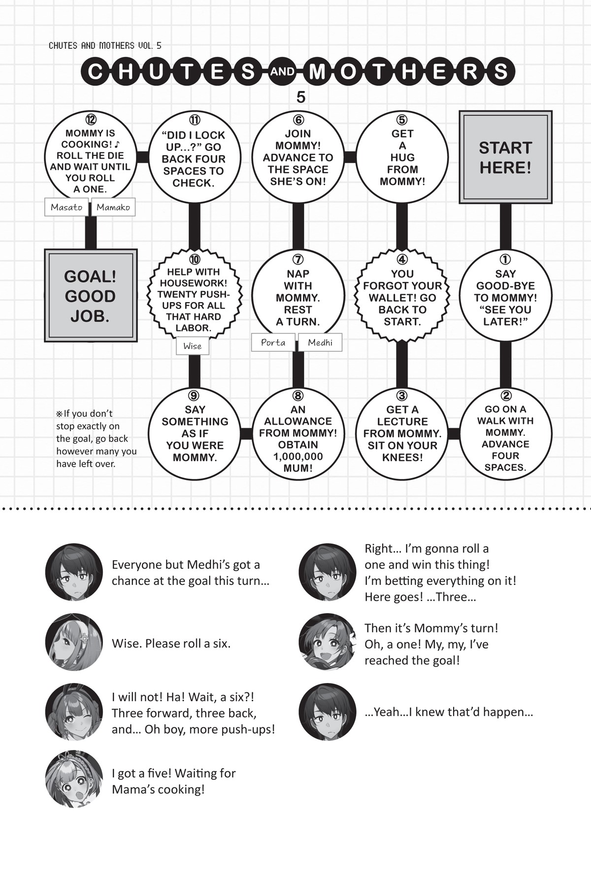 Dan, “Oh, ngobrol?” “Aku semua telinga.” “Aku juga.” Para ibu mulai keluar dari tribun dan duduk di sekitar Mamako.