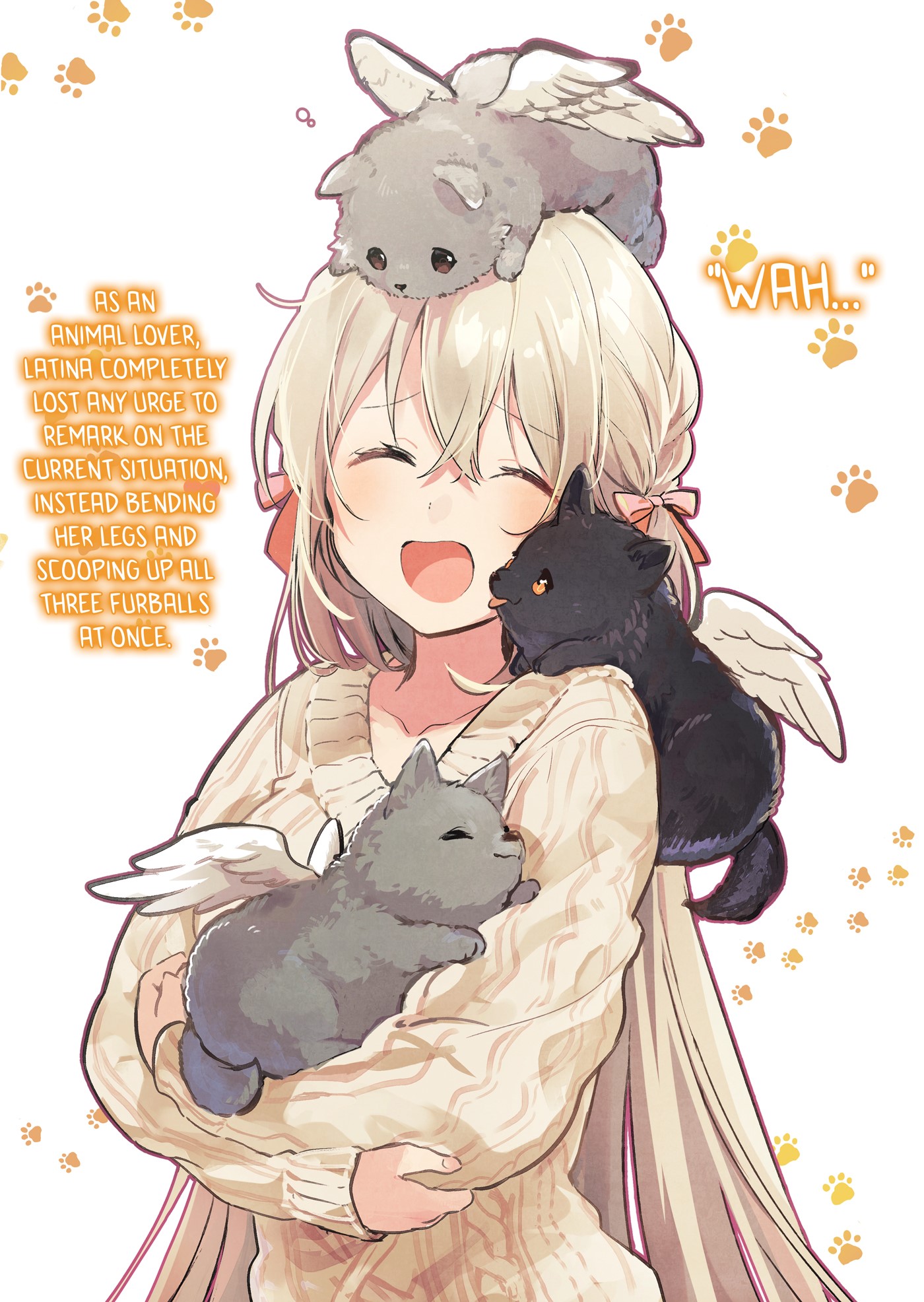 Dengan langkah kakinya yang gemeretak, ia meninggalkan dapur, mencari anak anjing yang setia itu. Sebagai sebuah ras, binatang buas mitos yang dikenal sebagai serigala yang melonjak memiliki tiga kesamaan dari sihir Suci, Angin, dan Api.