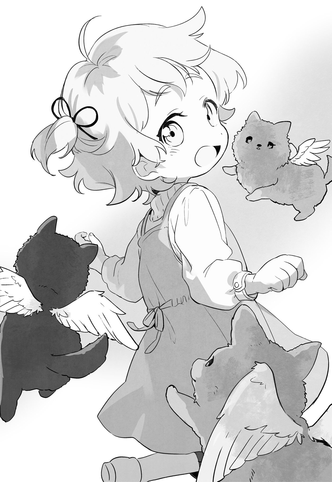 Dilihat dari sayapnya, dia menduga mereka adalah anak-anak anjing serigala yang membumbung tinggi. Namun, mereka terlalu muda untuk berbicara dalam bahasa manusia.