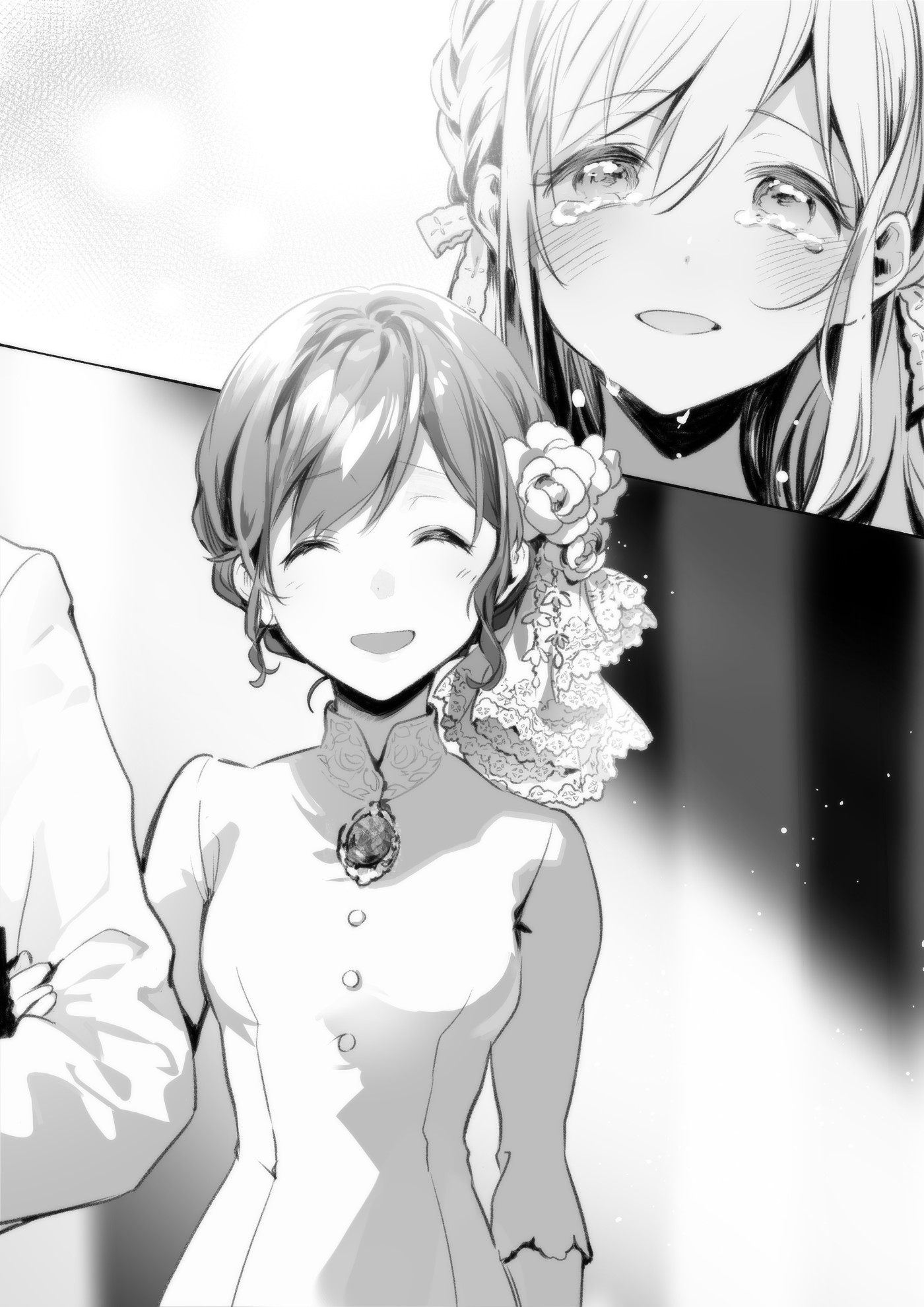“Waaah …” Latina terpeleset, diliputi emosi saat melihat sahabatnya mengenakan semacam hiasan kepala cantik yang dianggap sebagai simbol pengantin wanita. Itu dibuat menggunakan sutra yang diberkati oleh kuil, berfungsi sebagai semacam jimat pelindung. Hiasan kepala semacam itu, terbuat dari banyak lapisan sutera dan dihiasi bunga-bunga indah, hanya disiapkan untuk pernikahan. Bunga-bunga itu oranye dari Quirmizi, dan hiasan kepala cocok dengan rambutnya yang hitam dan pakaian yang lebih lembut. Tidak mungkin melihatnya sebagai pengantin.