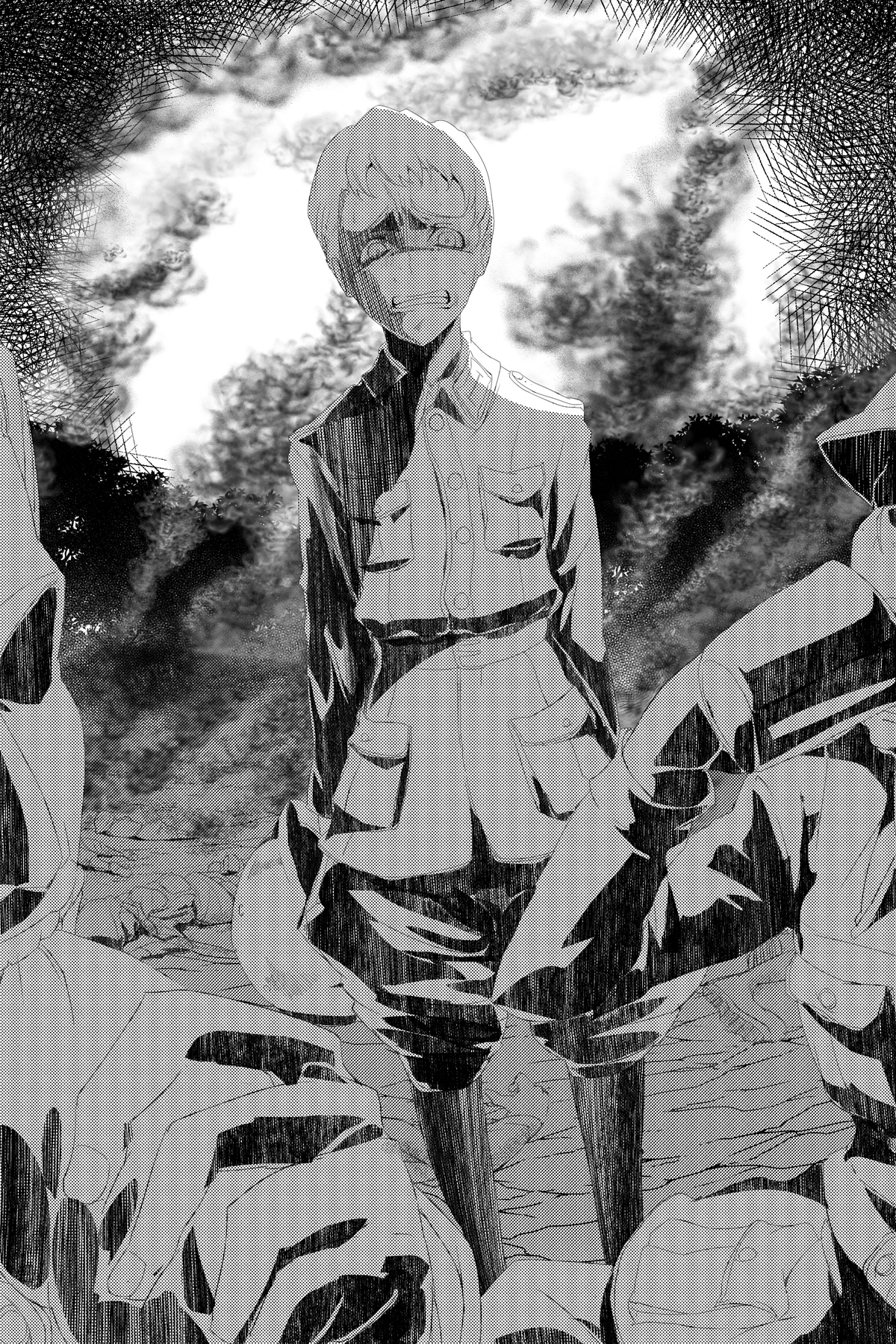 Sebelum dia menyadarinya, pikirannya kembali ke medan perang yang penuh kenangan. Bahkan setelah perang, pemandangan dan suara terlalu mentah dalam pikiran mereka untuk memudar. Ini adalah masa lalu, tetapi mereka dapat mengingat dunia itu dengan sangat jelas. Medan perang sialan itu. Hal paling mengerikan yang pernah diciptakan umat manusia. Medan perang tempat lumpur dan lalat berkuasa.