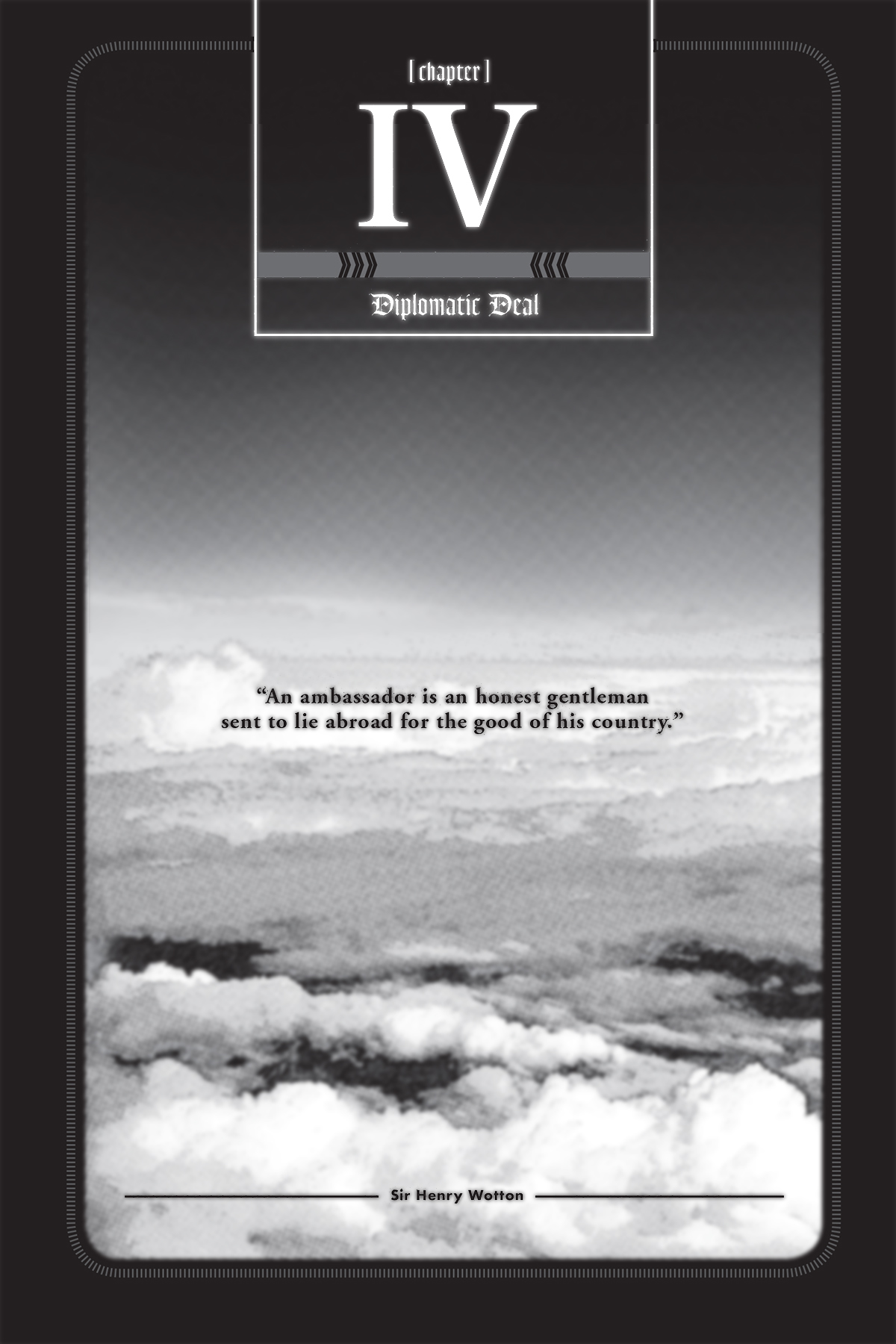 “Berbicara sebagai negara sekutu , saya mengingatkan bahwa perang lagi akan menjadi beban terlalu besar bagi perekonomian Kekaisaran. Izinkan kami untuk mengusulkan perundingan perdamaian. “Calandro yang selalu tersenyum sopan mengabaikan kebingungan Lergen dan menambahkan,” Saya sadar ini sombong, tetapi tidakkah Anda pikir ini saatnya menemukan cara untuk menyelesaikan masalah? Jika kami menyebutnya jalan buntu dan sukarela untuk menengahi, akankah Anda mempertimbangkan untuk menerimanya? ”