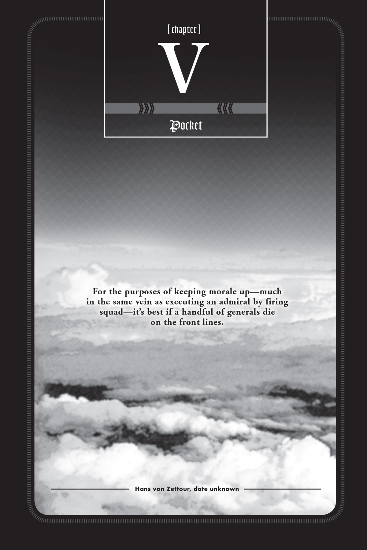 “Saya yakin dari sudut pandang Komandan Cramm …” Keinginan Anda untuk pergi ke garis depanlah yang menyebabkan situasi ini, bukan begitu, Pak? Itulah sorot matanya, seperti ingin mengatakan sesuatu, dari letnan satu yang mengawal Letnan Jenderal von Zettour; rupanya, dia tidak ragu-ragu untuk mengungkapkan pendapatnya di medan perang.