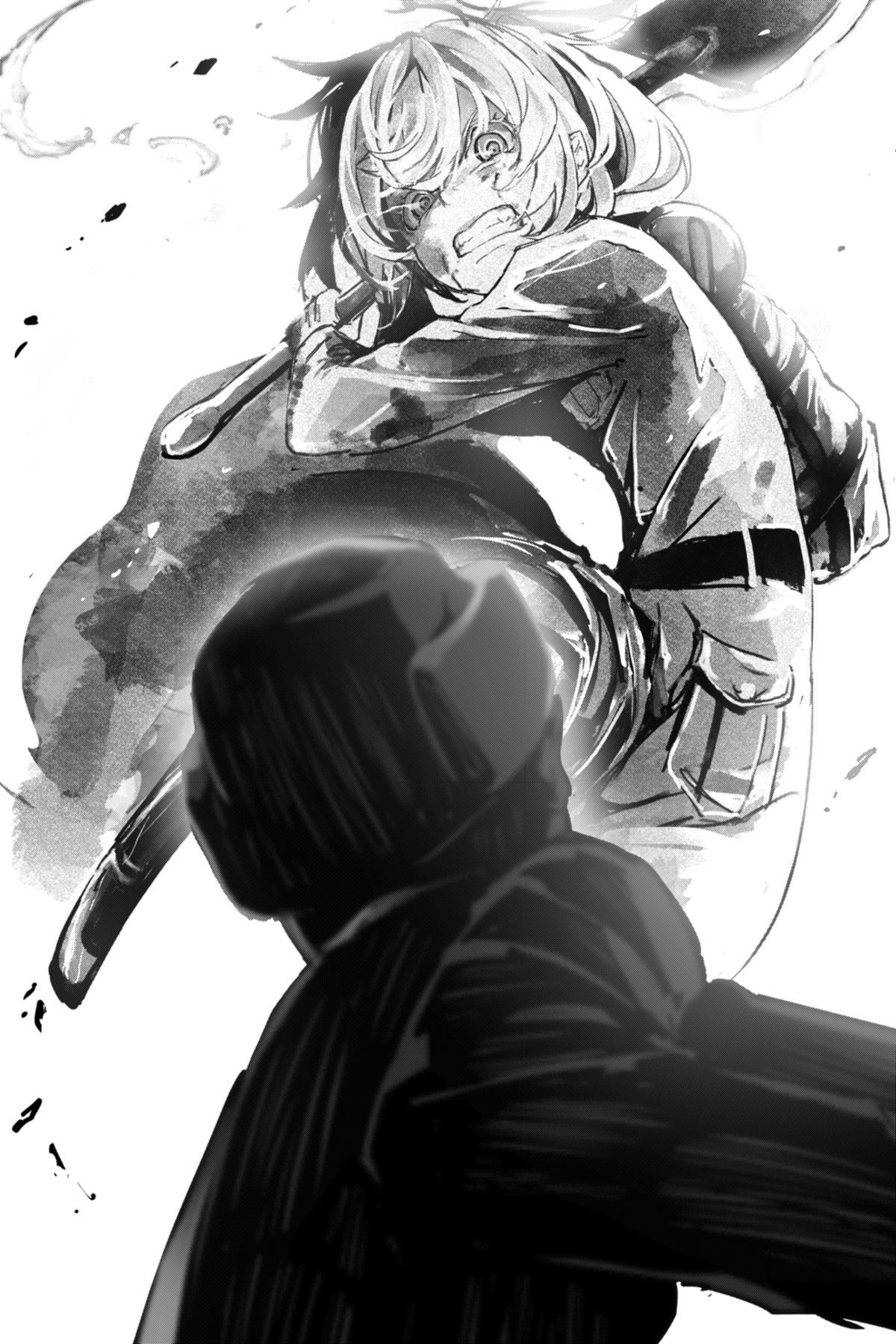 Ini adalah serangan yang didaratkan oleh penyihir udara tanpa melambat, didorong oleh percepatan gravitasi, menggunakan logika yang sama dari serangan kavaleri yang dilakukan di setiap zaman dan wilayah. Bahkan jika Tanya sendiri ringan, dia sekarang adalah rudal yang menakutkan.